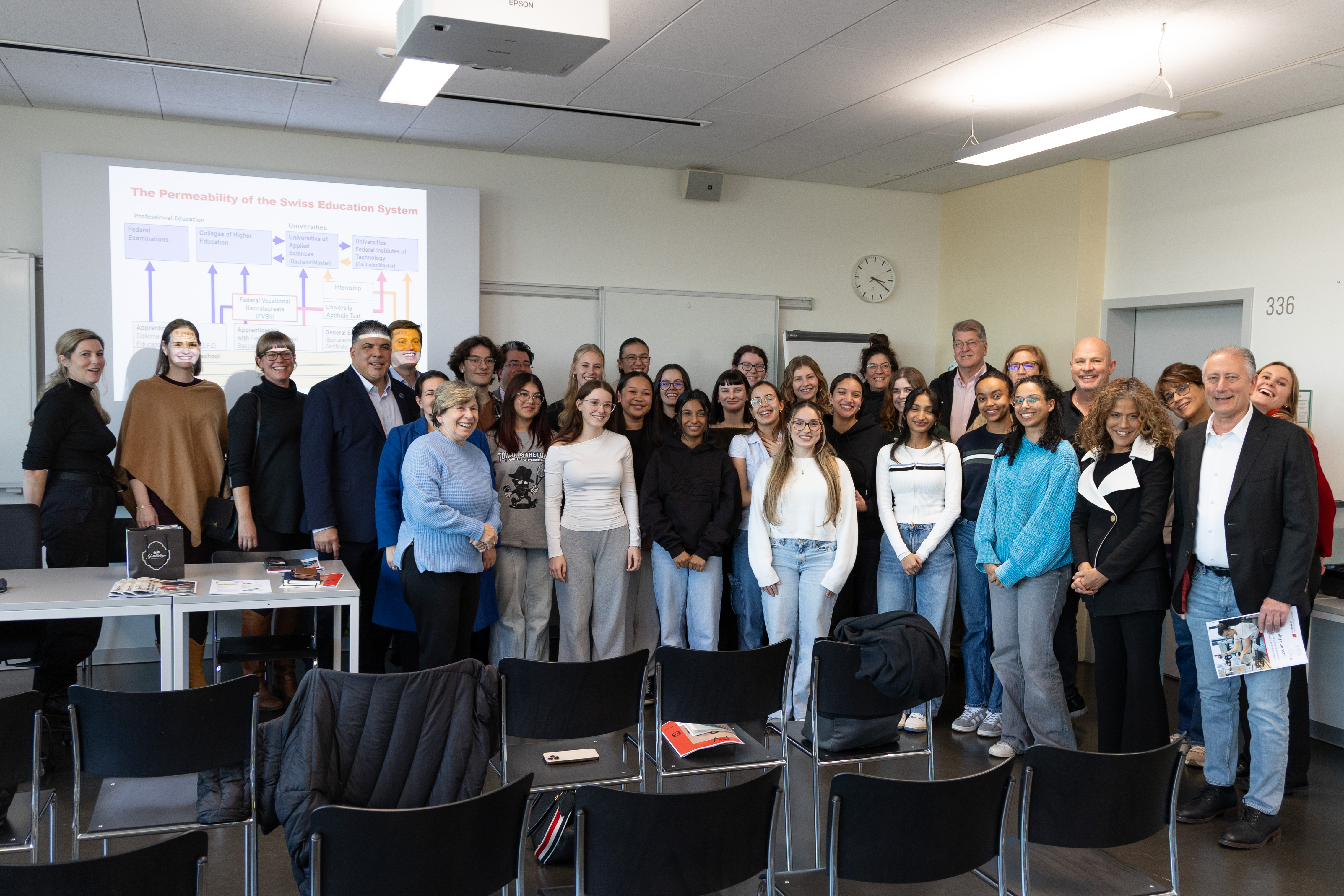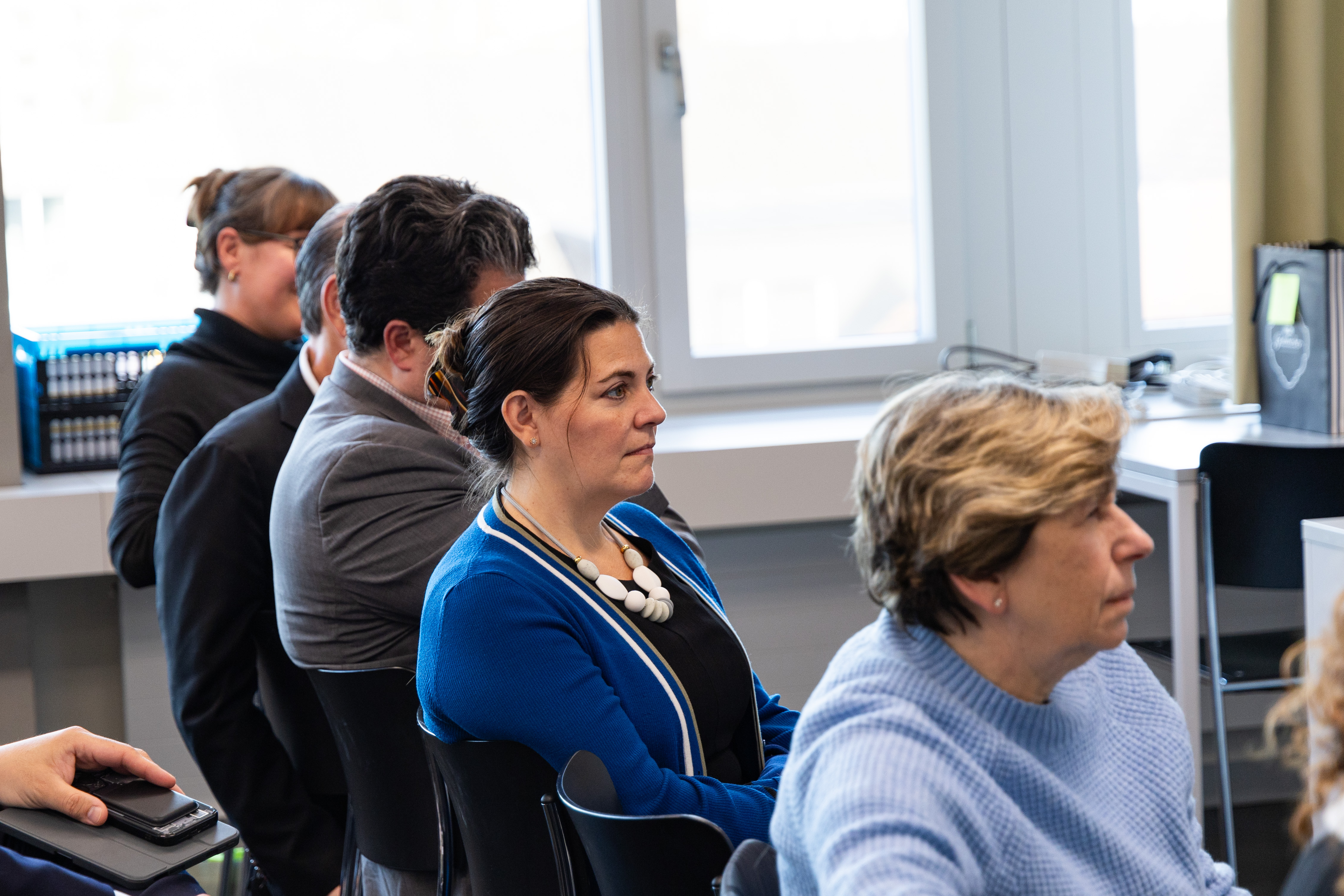 During the two-hour visit, Rector Beat Deola explained the structure of the Swiss education system as well as the vocational and academic options available in Switzerland after primary and secondary school. He demonstrated how practical work and school education complement each other in apprenticeships and highlighted the role of the vocational baccalaureate as a bridge to universities of applied sciences. Corinne Artho from the Organization of the World of Work (OdA) emphasized the importance of practical training and presented vocational training in healthcare.